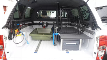 Oprema za dvig tovora s pasjo kletko in predalom za keson pick-up vozila