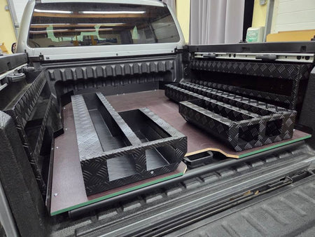 Aluminijasti kovček s policami za montažo na levi ali desni strani kesona. Praktično za shranjevanje in prevažanje manjših stvari.